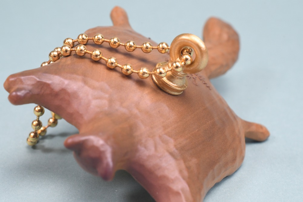 「ムササビランプ」はゴールドのボールチェーン付きで、持ち物などに付けられます。