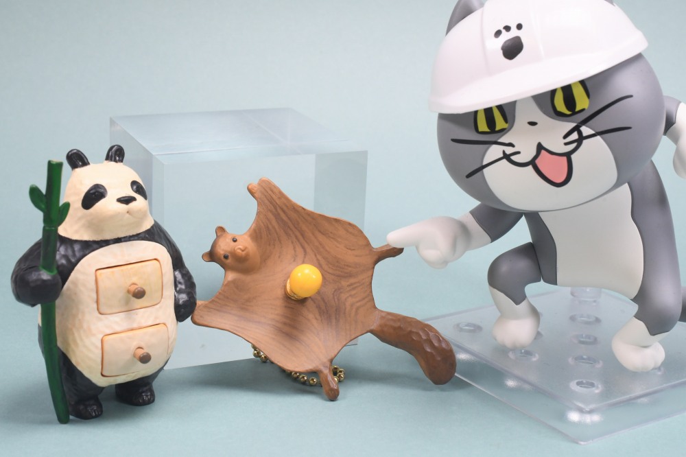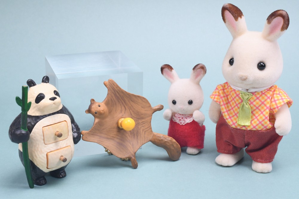 「ウサギミラー」は鏡素材で映り、「カワウソバスケット」のフタや、「パンダアクセサリーボックス」の引き出しは開閉可能です。