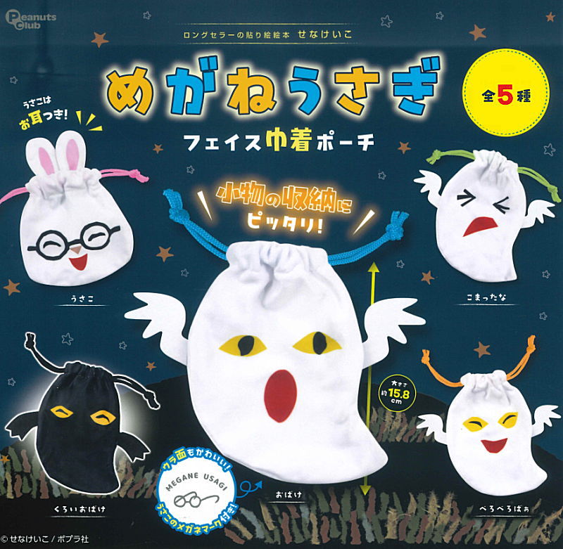 - ガチャめがねうさぎ フェイス巾着ポーチ/ピーナッツクラブ
