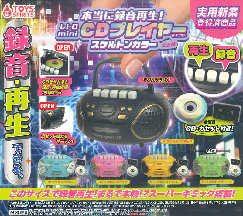 - ガチャ本当に録音再生!レトロminiCDプレイヤーマスコット スケルトンカラー/トイズスピリッツ