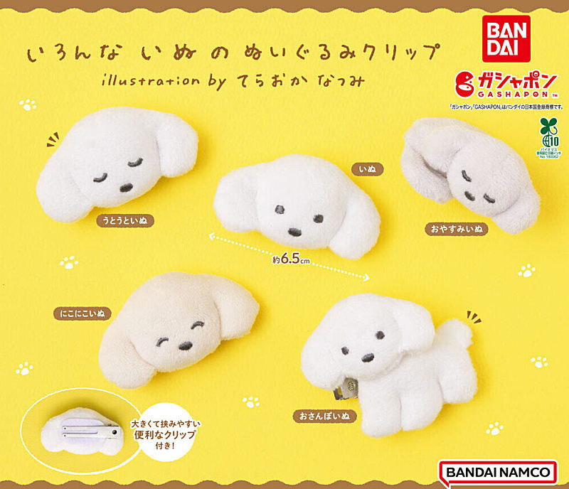 - ガチャいろんないぬのぬいぐるみクリップ illustration by てらおかなつみ/バンダイ
